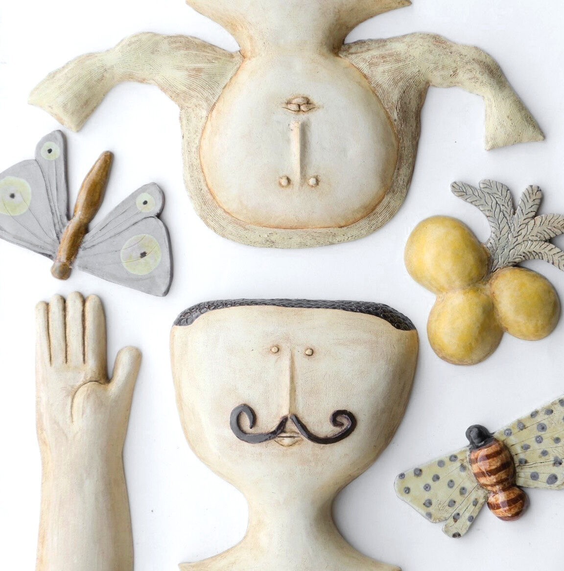 福士 遥 / FUKUSHI HARUKA主にパート・ド・ヴェールという技法を使い、ガラス素材を電気炉で成形して作品づくりをしています。ガラスの粒が溶ける時に空気を抱き込んでできる質感は、やわらかく、独特の光をたたえていて、その様子は、曖昧だけど親しい、記憶のなかの光景とよく似ていると思います。 フォルムの中に絵を描くような意識で、くらしや壁面をいろどる作品の制作を行っています。