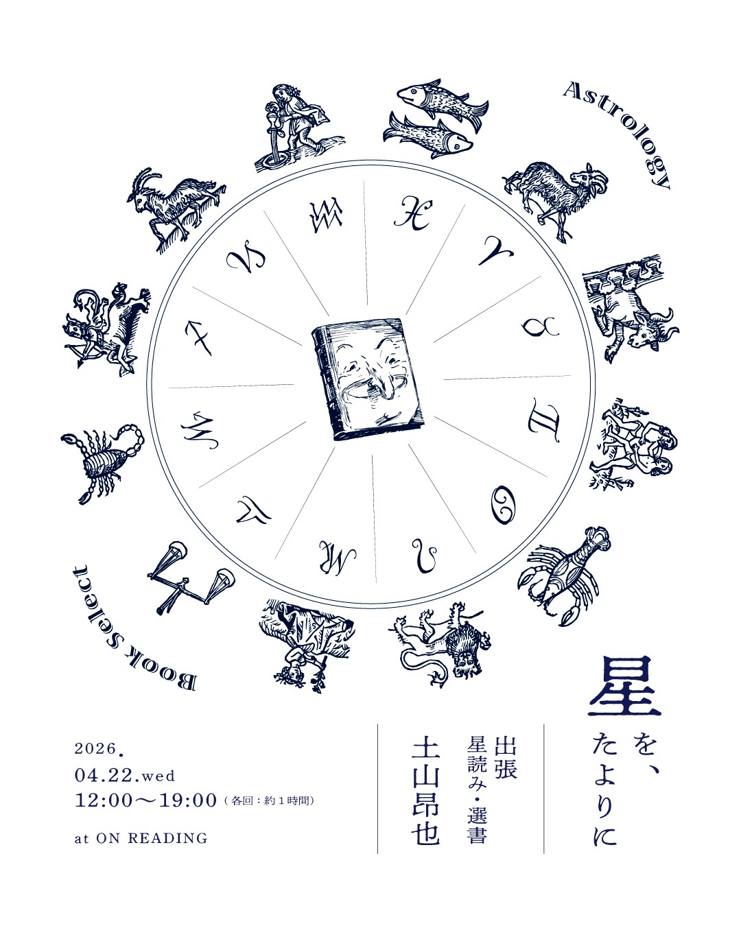 場所:ON READING GALLERY(名古屋市千種区東山通5-19 カメダビル2B)予約枠(約60分/星読み+選書)