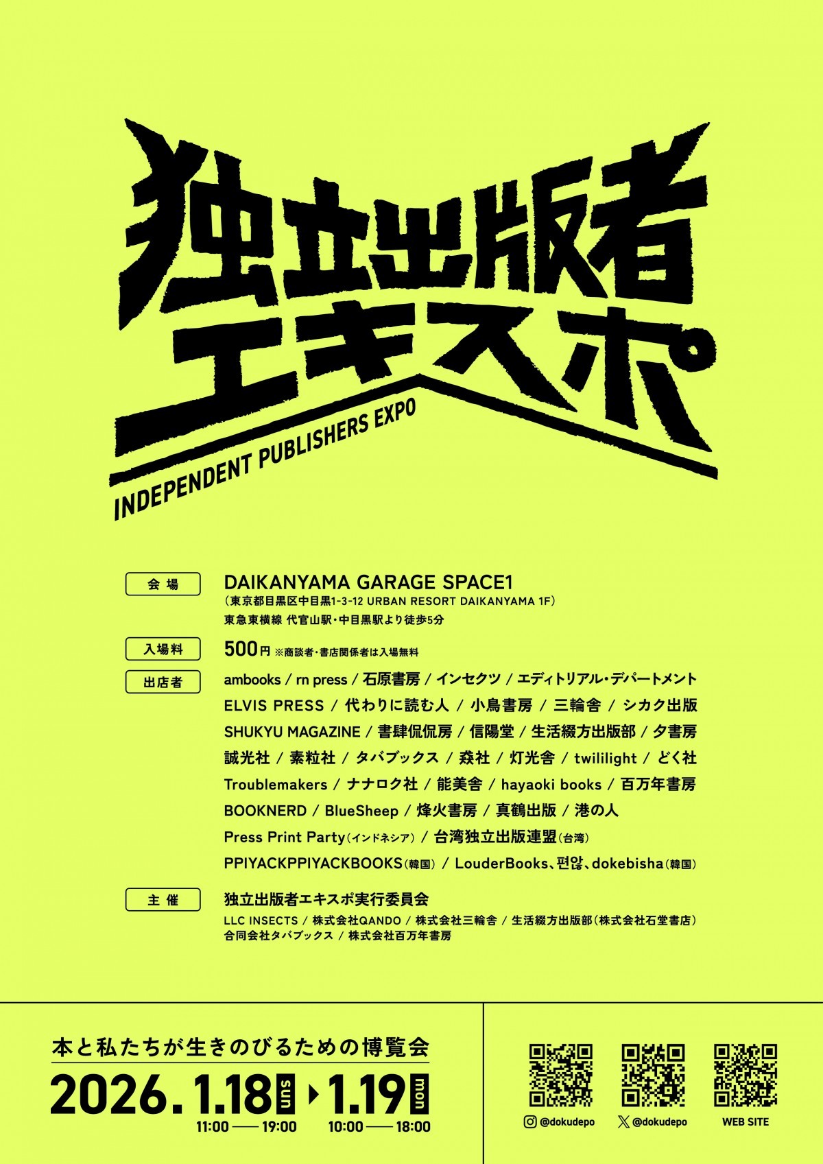 2026年1月18日・19日に初開催の「独立出版者エキスポ」にELVIS PRESSとして参加します!出版者自身がブースに立ち、直販&書店様との商談にも応じるブックフェスです。